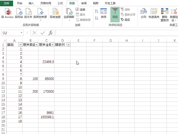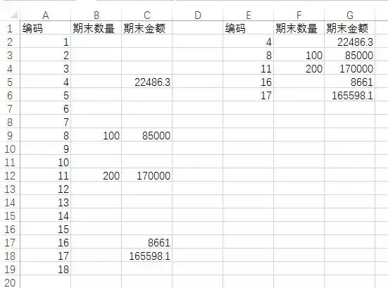 1.将期末数量或者期末金额不为空的,筛选到其他地方。