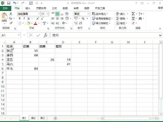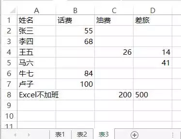3.有多个表格,格式相同,但姓名人数不同,要快速将所有费用汇总。