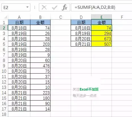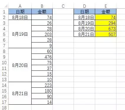 2.A列的日期使用合并单元格,现在要统计日期对应的总金额。