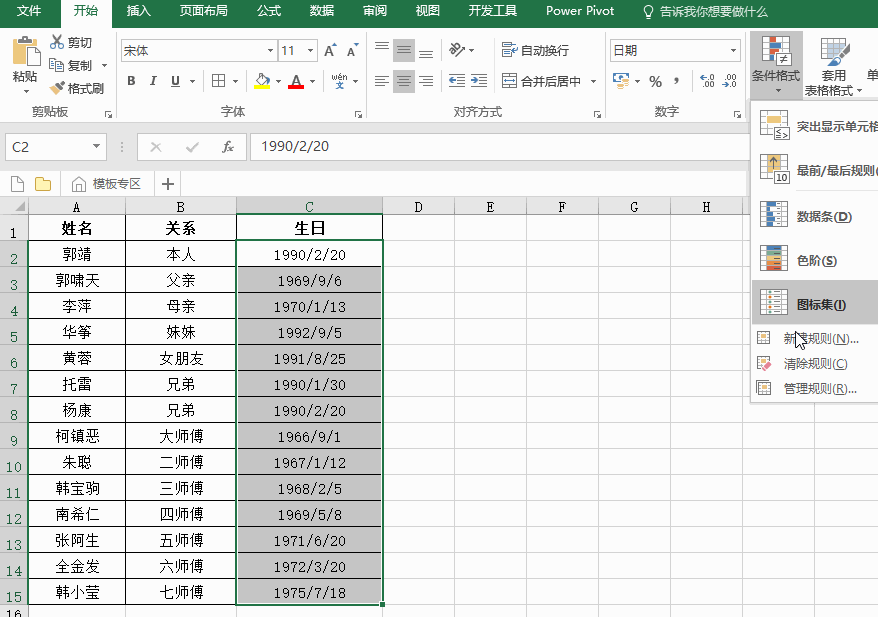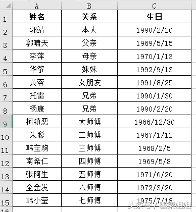 第一步:将身边所有人的姓名、与本人的关系和生日录入Excel表格。