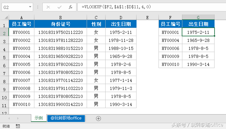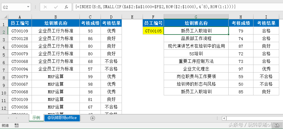 G2单元格输入公式后,按Ctrl+Shift+Enter三键,向右和向下拖动填充公式。