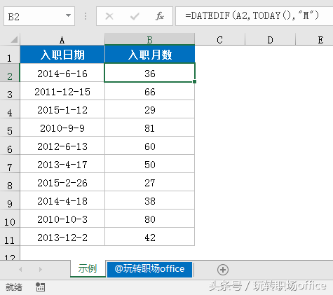 4、根据入职日期计算入职月数