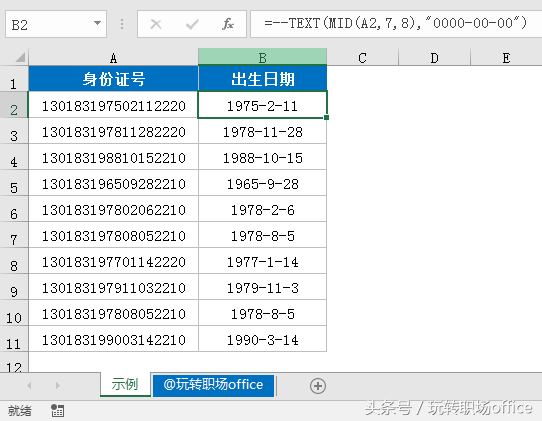 1、身份证提取出生日期
