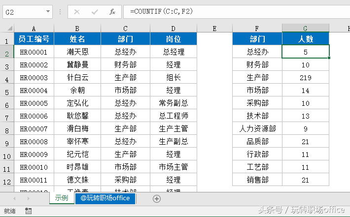12、按部门汇总人数