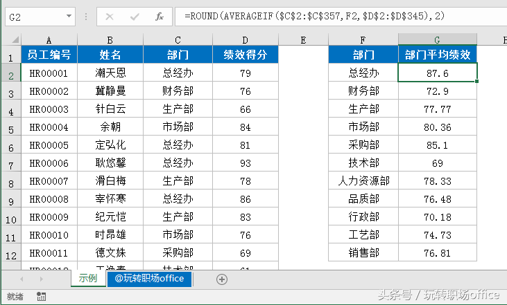 15、计算部门平均绩效得分