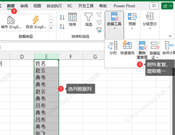 第一步利用自带的“删除重复值”功能,得到唯一值!