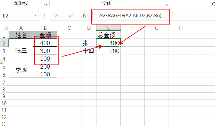 =AVERAGEIF(A2:A6,D2,B2:B6),公式使用正确,但是求均值只统计了满足条件的第一个单元格的值,原因是什么呢?
