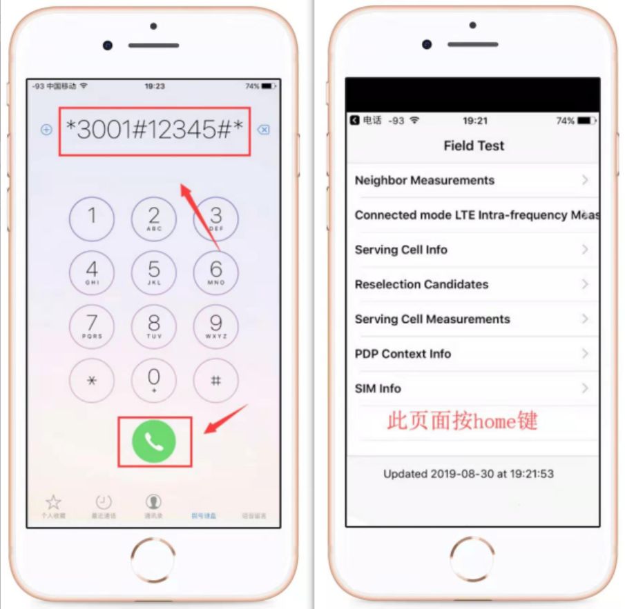 操作步骤: 打开拨号界面---输入一串代码[*3001#12345#*]---拨打电话,进入【现场测试】界面,按【home】键恢复原状。