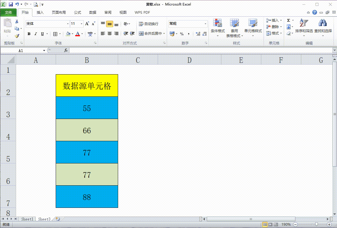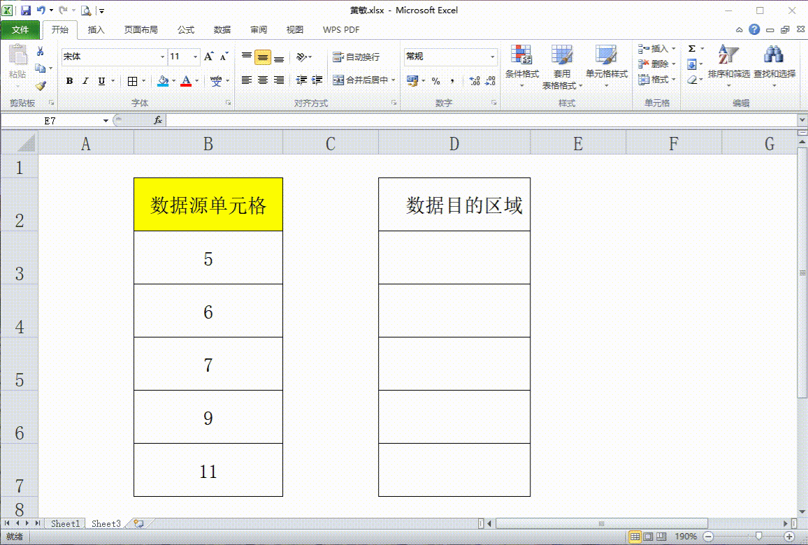 第三步:修改数据源单元格的值,目的区域单元格的值同步变化。