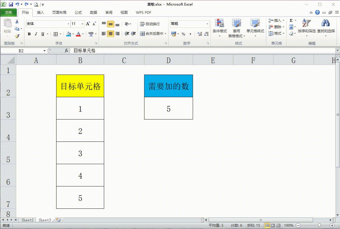 是不是很神奇,目标单元格中都加上了5。动图操作如下: