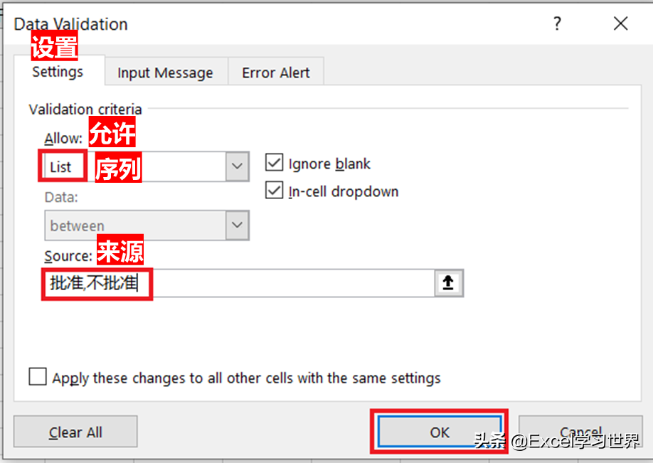 • 来源:输入“批准,不批准”