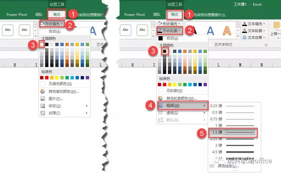 1-3 设置矩形填充白色,黑色边框,1.5磅。设置直线黑色边框,1.5磅。