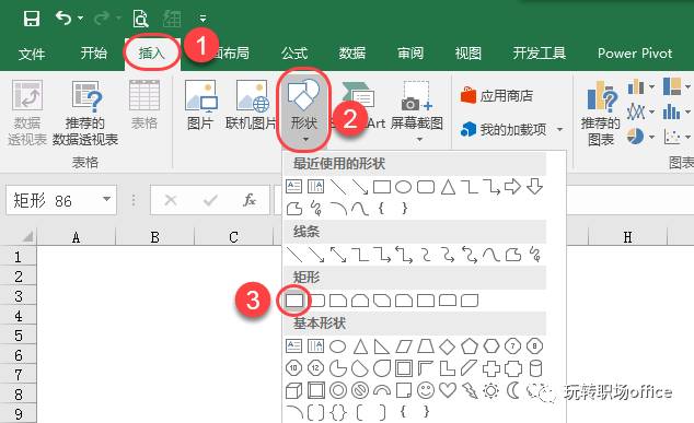 1-1 插入>形状,选择矩形图