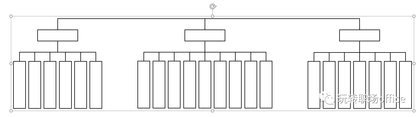 2-1 画一条直线,设置黑色边框,1.5磅,画一个矩形,长度和宽度足够将最长的机构名称填写进去,设置矩形填充白色,黑色边框,1.5磅。将直线和矩形设置对齐方式为水平居中和垂直居中,组合起来并复制粘贴两份。
