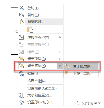 1-4 将直线放到矩形上,并在顶端露出一定的长度,单击右键,选择置于底层。