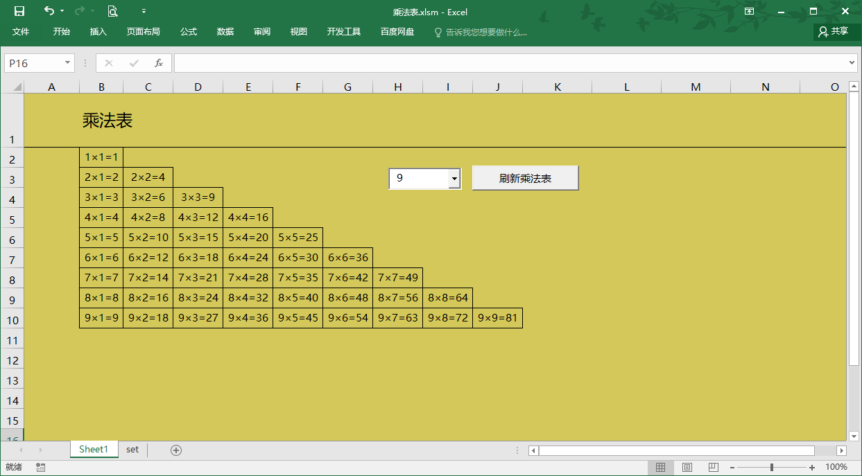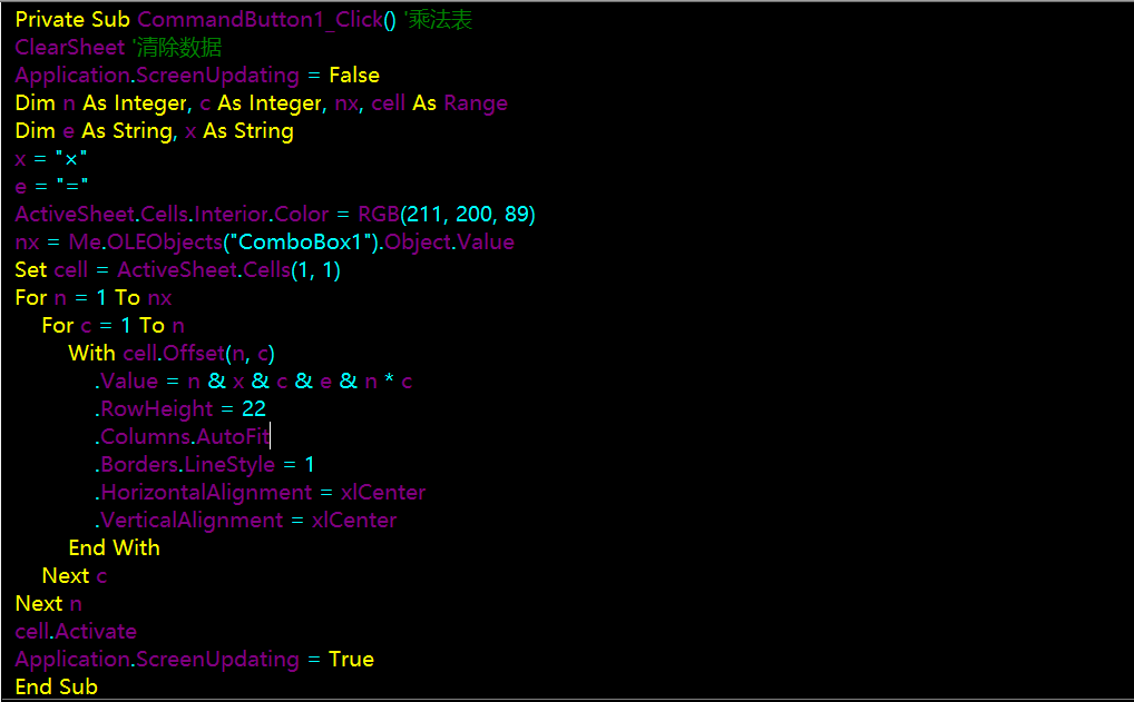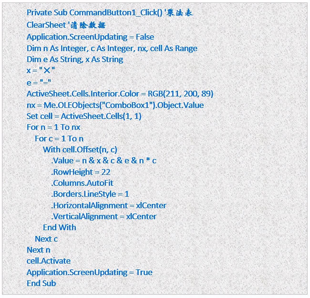 利用VBA实现一些小功能,还是很有意思的,乘法表虽然是一个简单得不能更简单的表,但是利用代码来构建整个过程,实现思路是一个很意思的想法。