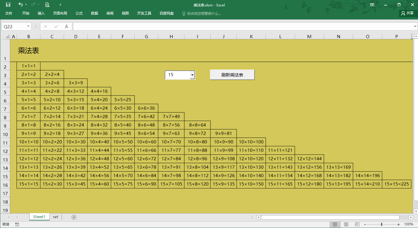 选择下拉列表,然后单击按钮,自动显示乘法表样式。