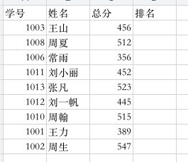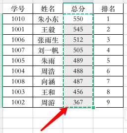 其中,点击降序即总分最高的会显示在最前面;点击升序即总分最低的在最前面,所以我们在做成绩排序时,一般都选择“降序”进行排序;