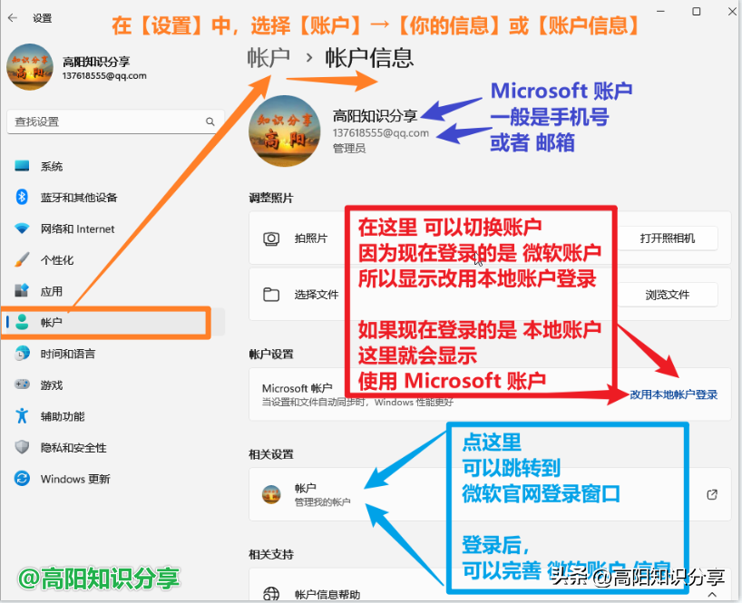 如果有微软Microsoft账户了,就是类似图片的显示,如果这里显示本地账户,那么就需要注册一个微软Microsoft账户。