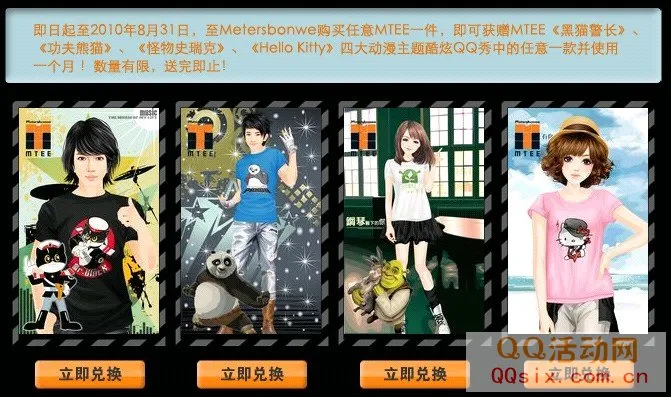 除了和《 城堡 》专辑的合作, QQ 秀还和美特斯邦威合作过,买衣服就送动漫主题 QQ 秀。