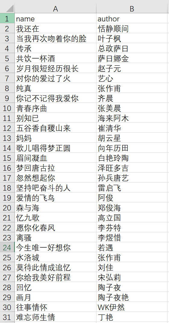 为了实现抓取某目标网站的歌曲以及作者,通过python + Xpath方式实现,并将抓取的结果保存到csv格式的excel表格里。