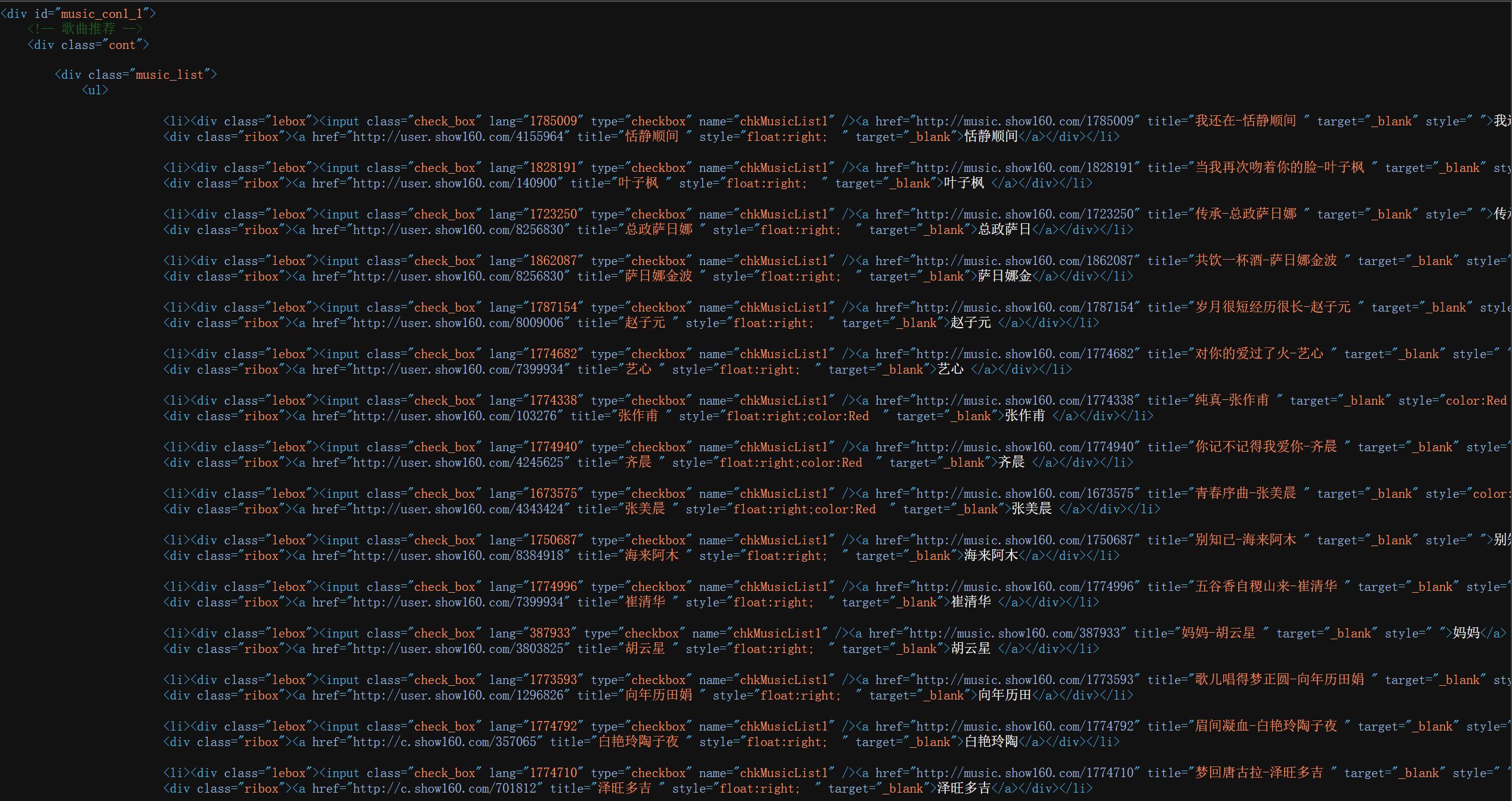 item_list = selector.xpath('//*[@id="music_con1_1"]/div[@class="cont"]/div[@class="music_list"]/ul/li')