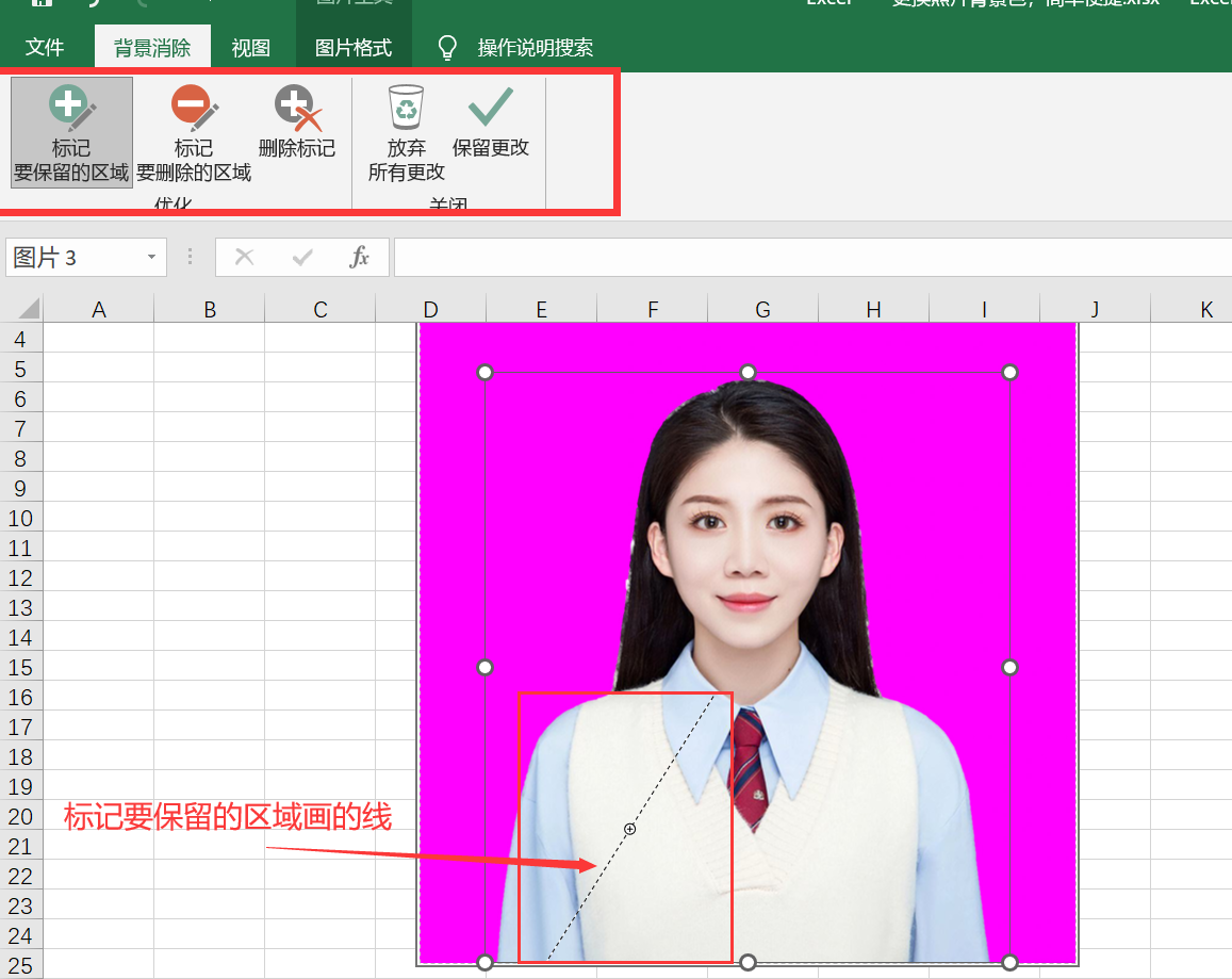 标记好保留区域