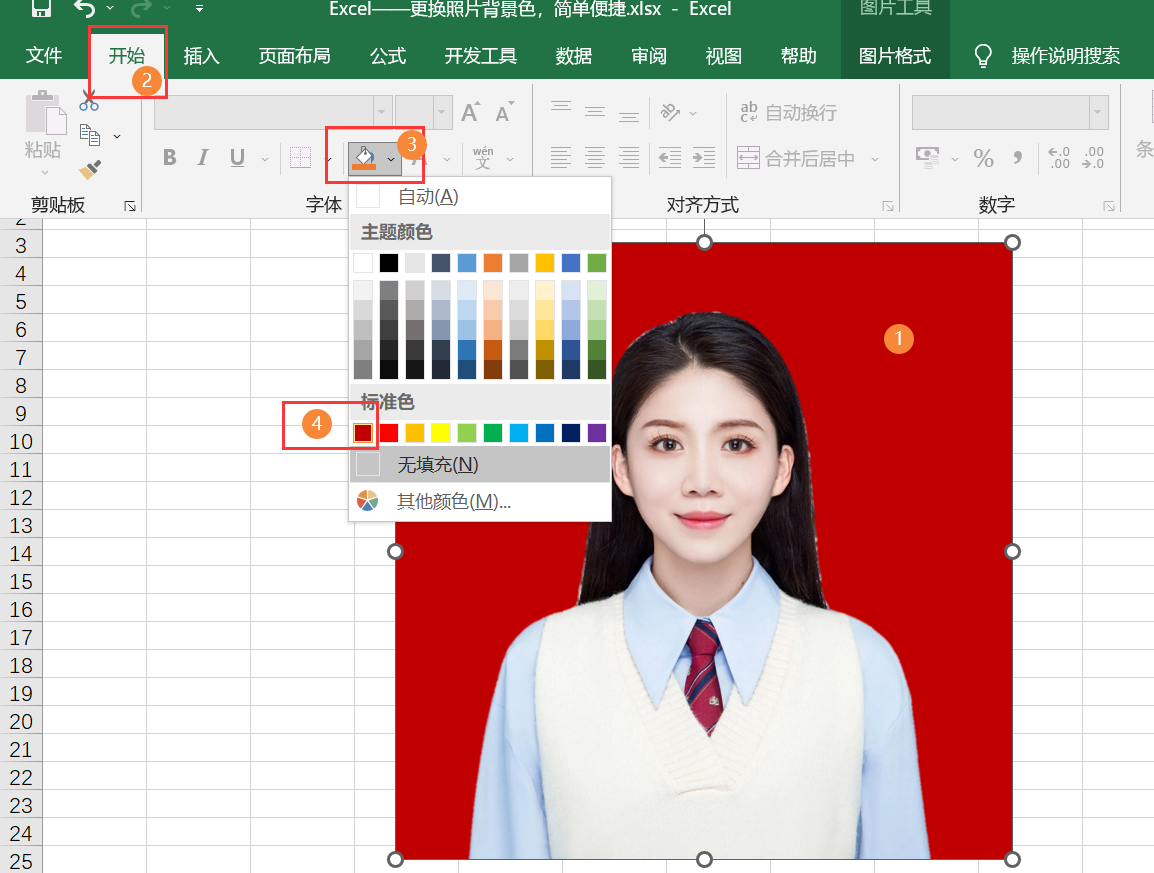 更换好背景色的照片