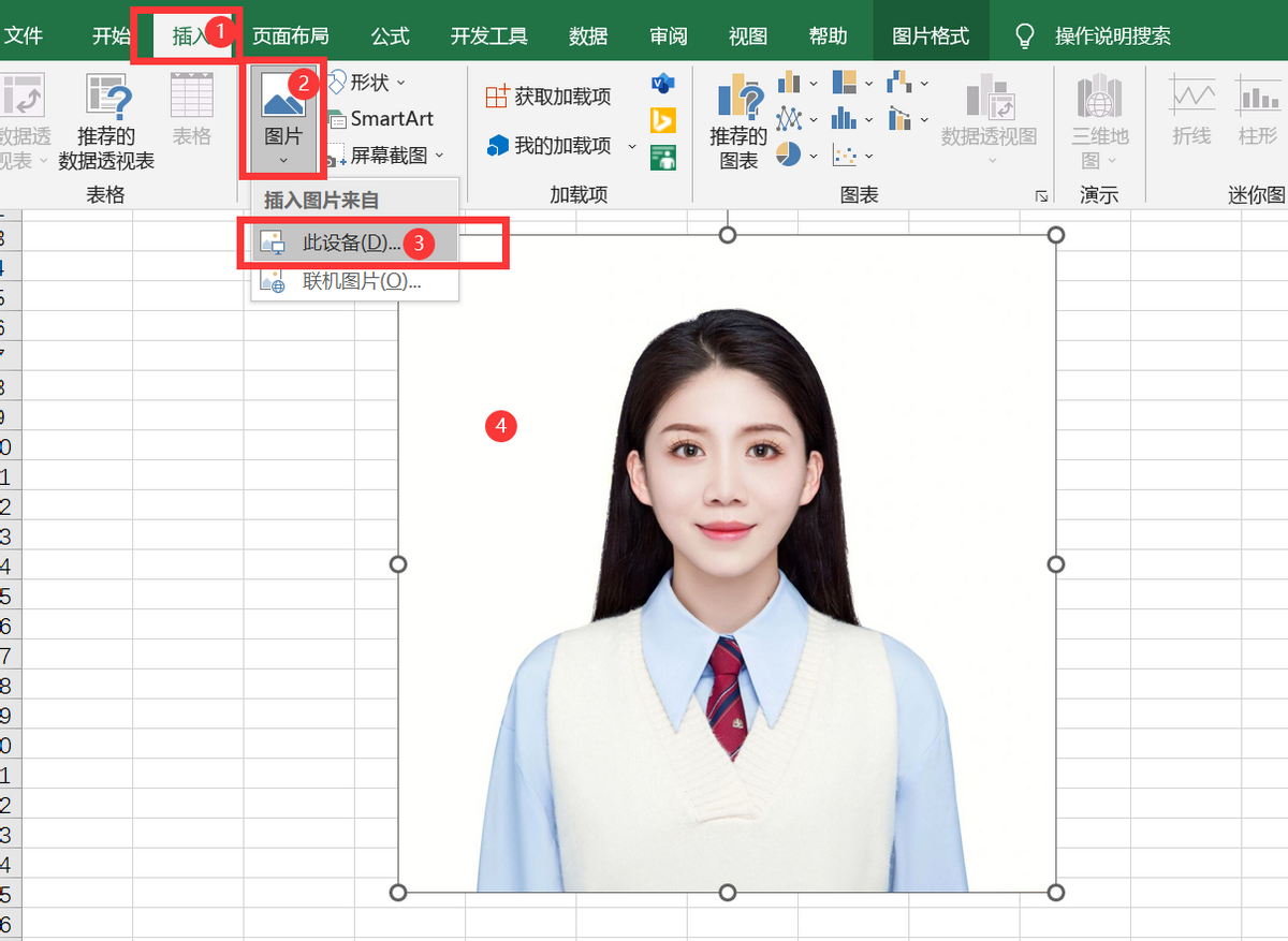 (插入——图片——此设备——选择照片)
