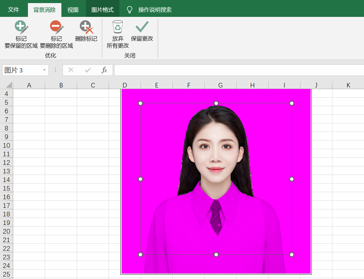 4、所有需要删除和保留的区域均标记清楚后,点击“保留更改”,删除背景,如下图所示,背景删除后,照片不存在任何背景色。