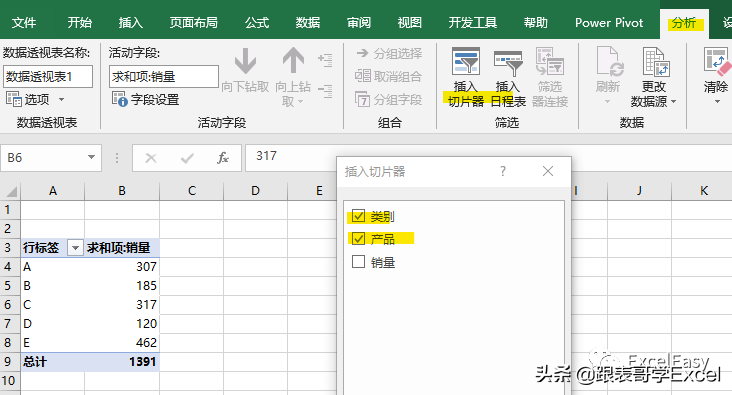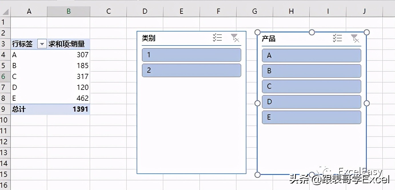 我们为透视表插入了两个切片器。因为我们不是展示效果,所以就使用了缺省的切片器格式。