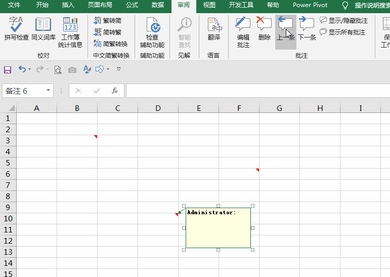 - 选择菜单栏的“审阅“,点击“上一条”或“下一条”依次选择批注;
