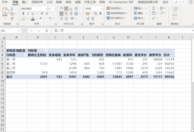 在公司,老板经常会给到一份已经统计好的销售数据,需要我们按照季度或月份统计销售额。