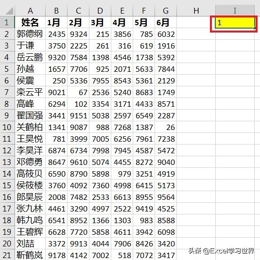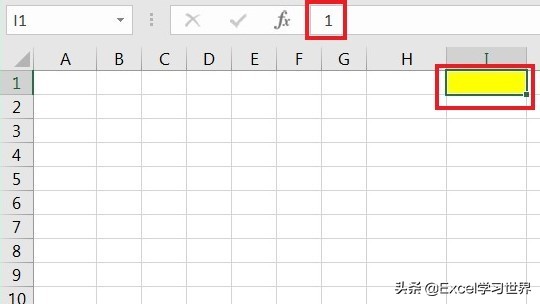 5. 现在设置已经完成,我们来看一下效果:在 I1 单元格输入“1”--> 回车