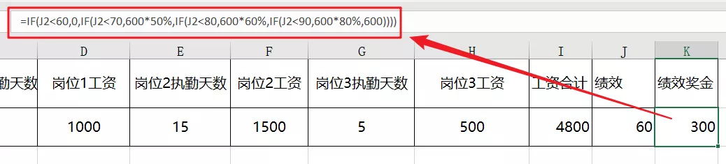 =IF(J2<60,0,IF(J2<70,600*50%,IF(J2<80,600*60%,IF(J2<90,600*80%,600))))