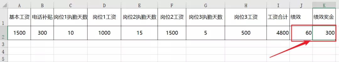 比如下面这个表格,就是一个简单的工资绩效核算表。