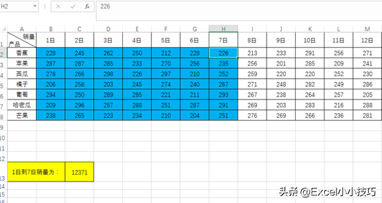 ⑦使用COUNTA函数可以确保有新的品种销量增加时,能够自动更新求和区域。