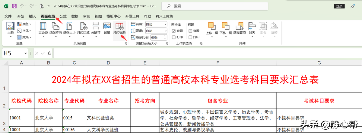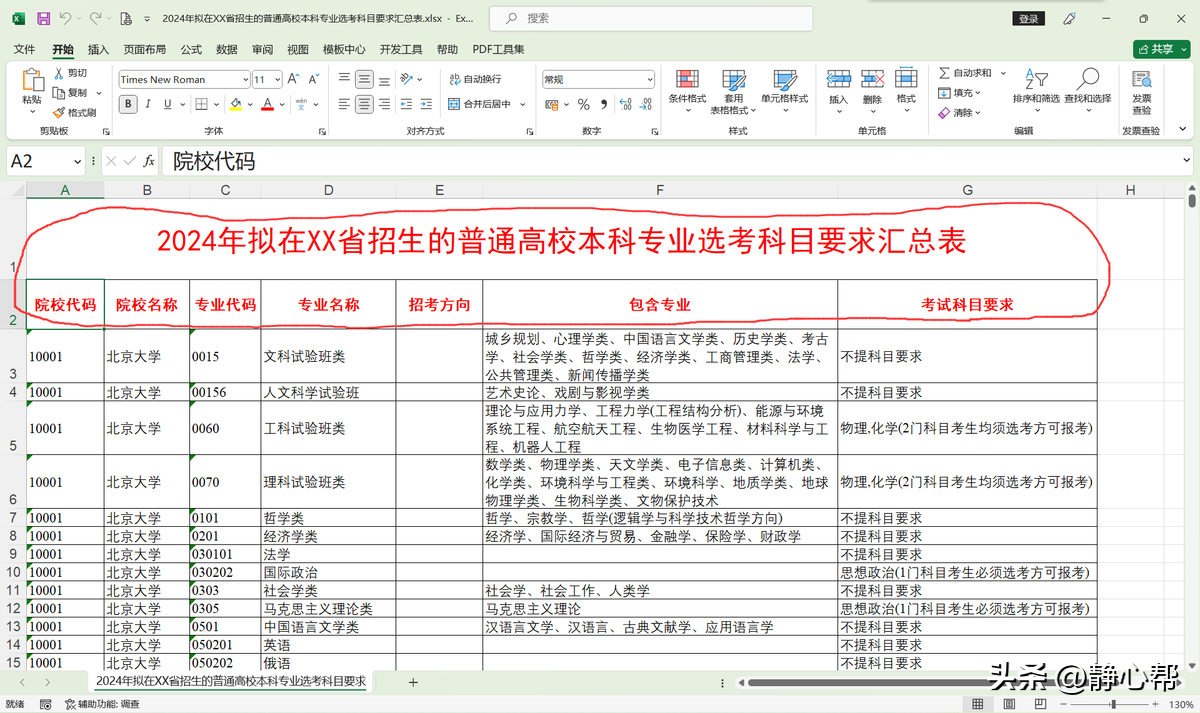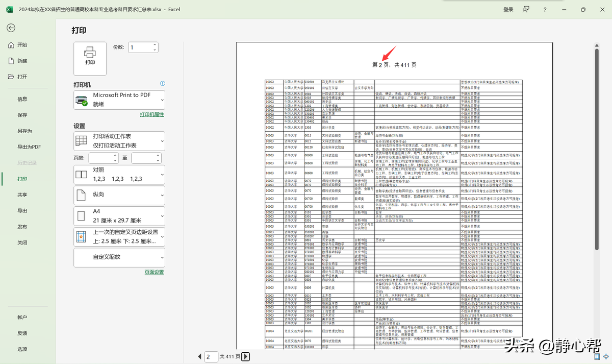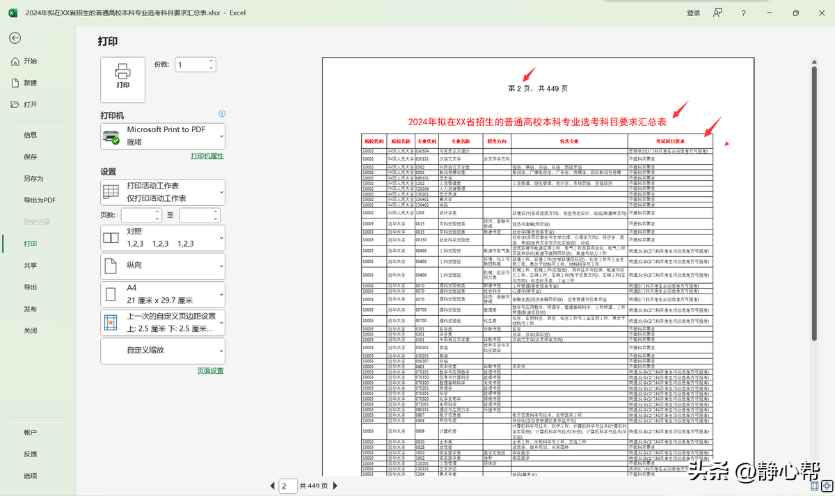小白同学今天看到了一份《2024年拟在XX省招生的普通高校本科专业选考科目要求汇总表》,想打印出来仔细研究研究。