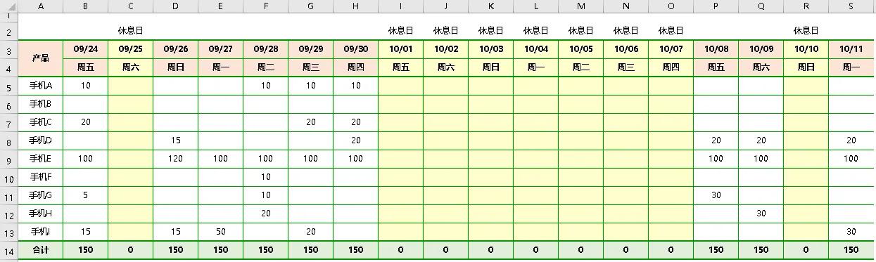 1. 首先 我们拿到的生产计划表如下图所示 (实际上你用的和我们的案例会千差万别, 但不重要, 操作方法是一致的)