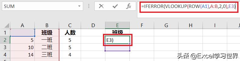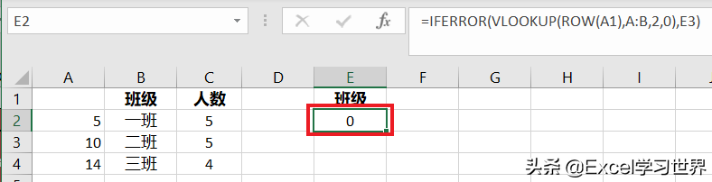 - 以依次递增的行值,即 1、2、3、4…… 作为要查找的值,查找 B 列对应的班级名