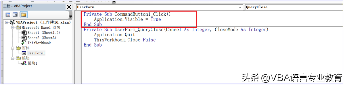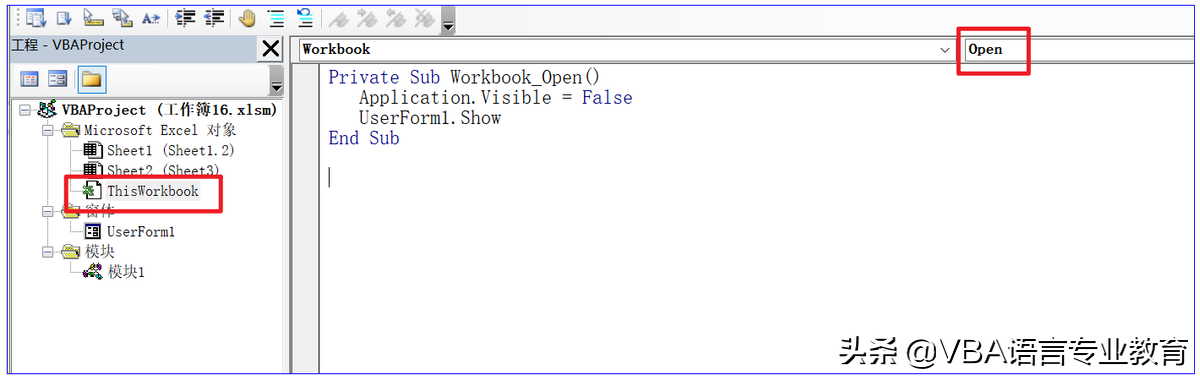 1 实现打开工作薄时只显示窗体的代码及代码解读