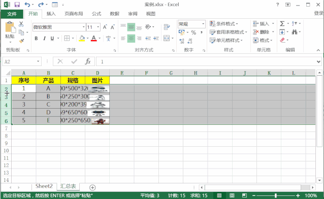 第二步:经过上面的图片属性设置后,我们再复制所有的数据,然后在汇总表中进行数据和图片粘贴。如下图所示: