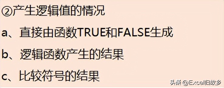 以上我们知道,TRUE和FALSE是一对对立的逻辑值,是在判断Excel函数当中做判断之后得到的结果。那么TRUE和FALSE这些逻辑值是怎么产生的呢?一般有以下三种常见情况: