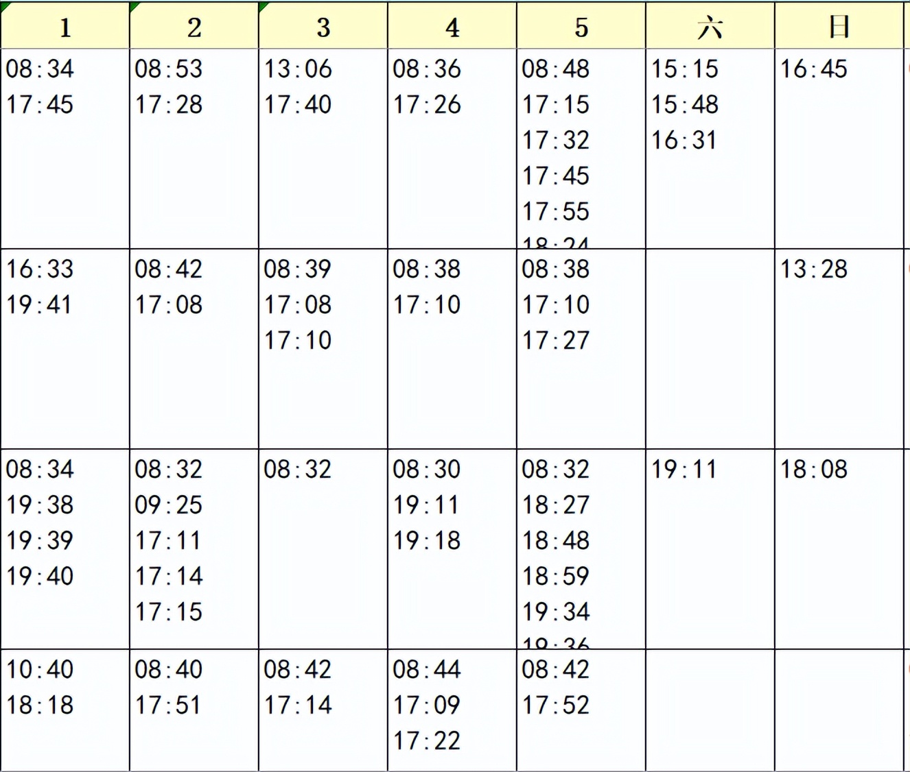 3,公司通常只统计上午上班打卡和下午下班打卡.但全天数据都存放在一个单元格,无法分离为上下午.