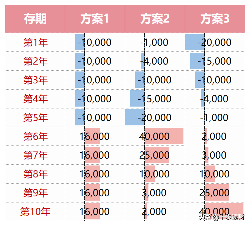 道理很简单,在投钱阶段,方案2把大头费用放在后面;在赚钱阶段,方案2把大头收入放在前面。