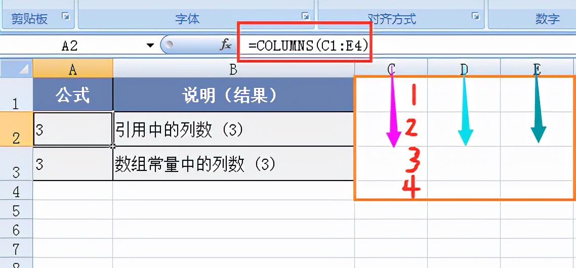 1、Array 为需要得到其列数的数组或数组公式 (数组公式:数组公式对一组或多组值执行多重计算,并返回一个或多个结果。数组公式括于大括号 ({ }) 中。按 Ctrl+Shift+Enter 可以输入数组公式。),或对单元格区域的引用。