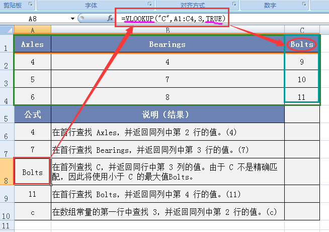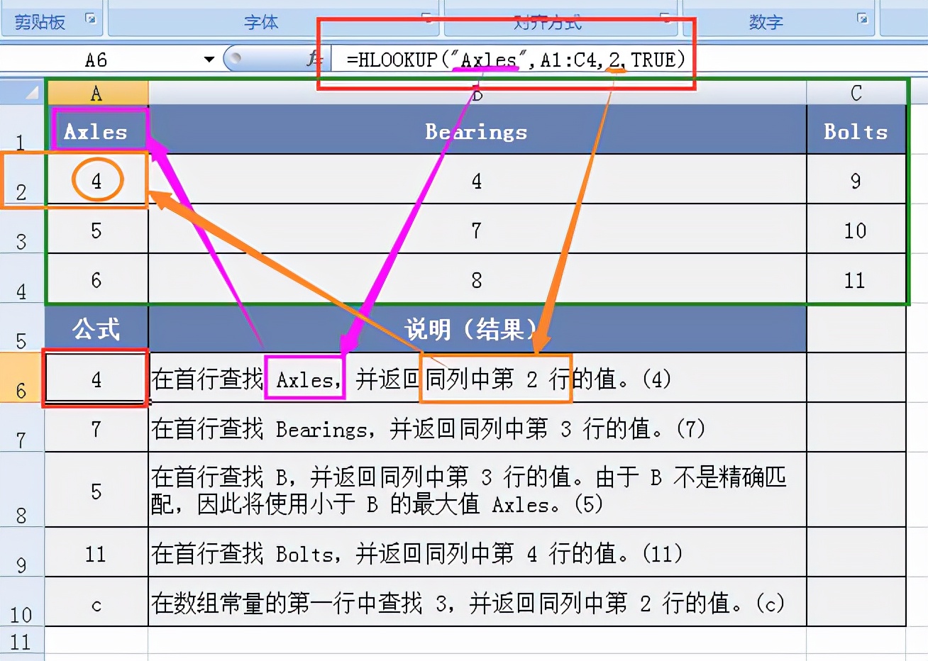 (2)如果 range_lookup 为 TRUE,则 table_array 的第一行的数值必须按升序排列:...-2、-1、0、1、2、…、A-Z、FALSE、TRUE;否则,函数 HLOOKUP 将不能给出正确的数值。如果 range_lookup 为 FALSE,则 table_array 不必进行排序。