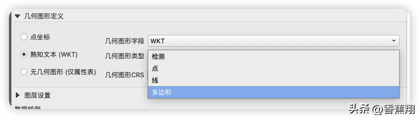 在几何图形类型中,我这边选择的是检测,可以根据具体要求来选,选项有点、线、多边形,我这边的数据很明确就是多边形,直接勾选多边形即可