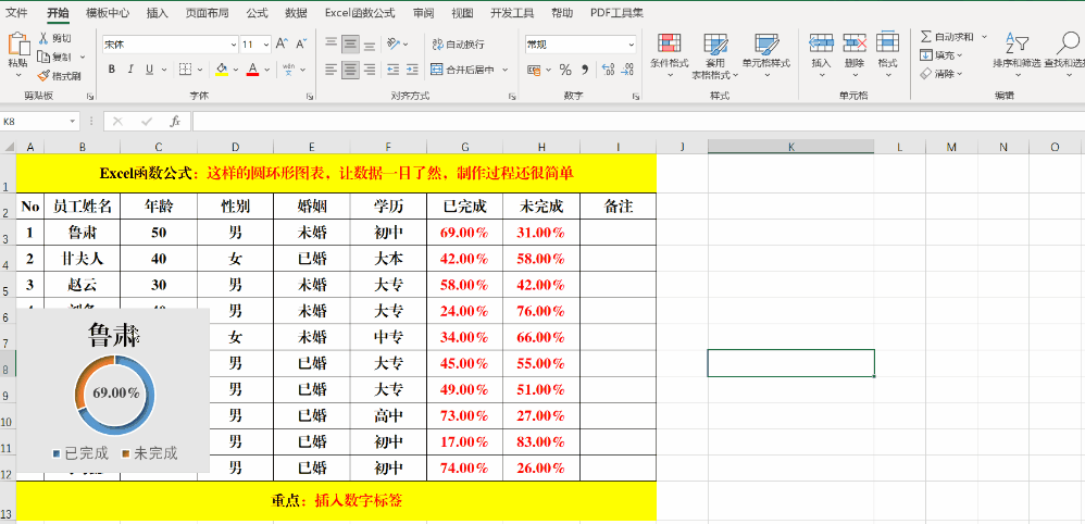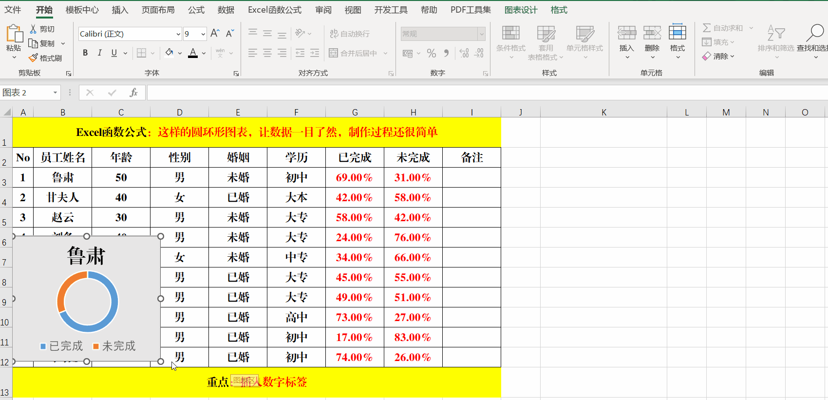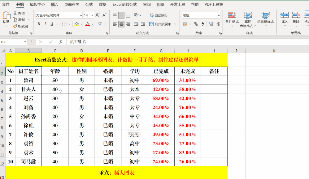 从上述的图表中可以看出,相关人员对业绩的完成情况。那该如何制作呢?