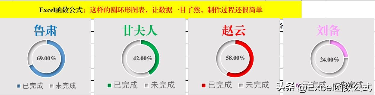 圆形环图,在占比(百分比)的数据展示中有着独有的优势,可以很清晰地展示数据的占比情况,如下图: